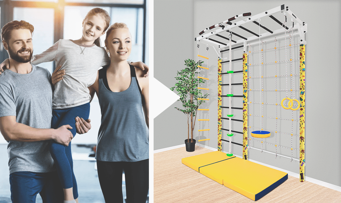 — качественная покраска, которая даже при частых занятиях не слезет и не обнажит металлические части; — съёмный турник, который можно установить на нужную для ребёнка высоту; — возможность установки «на вырост»: высота стенки составляет 220 сантиметров, так что на ней можно будет заниматься даже высоким детям; — необходимый минимум для физического развития ребёнка: помимо турника, тут есть гибкая лестница, канат и гимнастические кольца; — умеренная цена — 7 780 рублей.