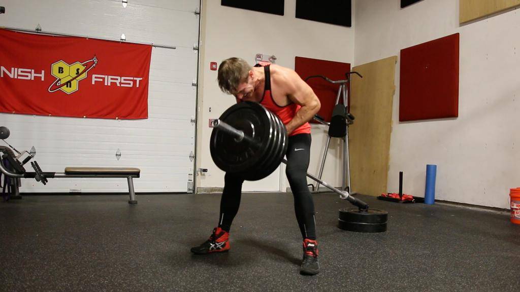 - Таз нужно отвести чуть назад. Начинаем тягу с уровня голеней.