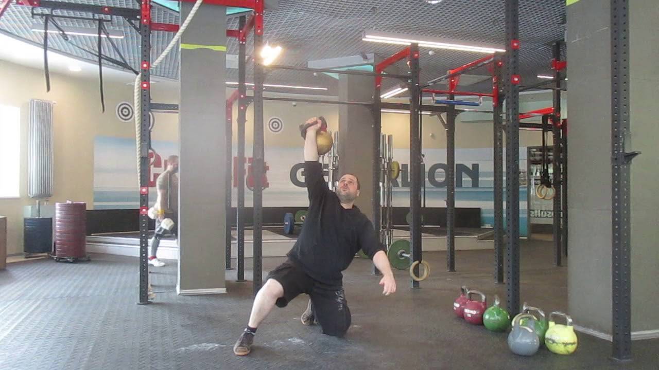 Толчок гири в кроссфите может выполняться не только в составе комплексов, но и как отдельное силовое упражнение для развития плечевого пояса атлета. В этот же день для компенсации желательно сделать подтягивания в строгой форме, в режиме, повторяющем структуру тренировки с гирями.