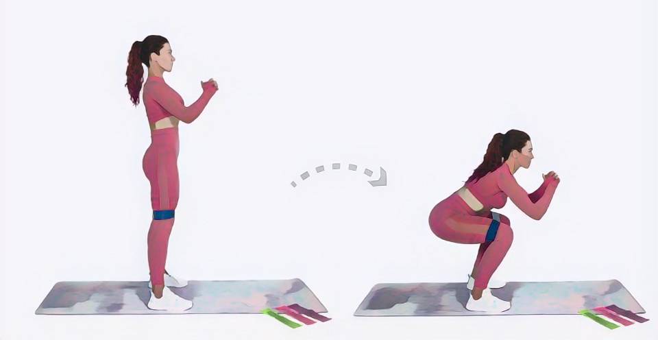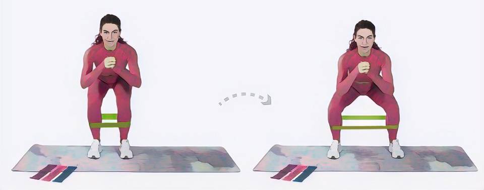 - Приседания с фитнес резинкой