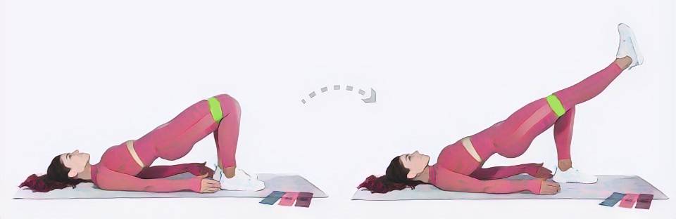 - Ягодичный мостик с подъемом ноги