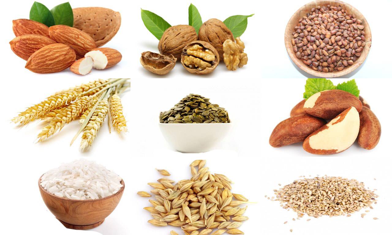 - Миндаль, фундук, грецкий орех, фисташки, кешью и арахис;