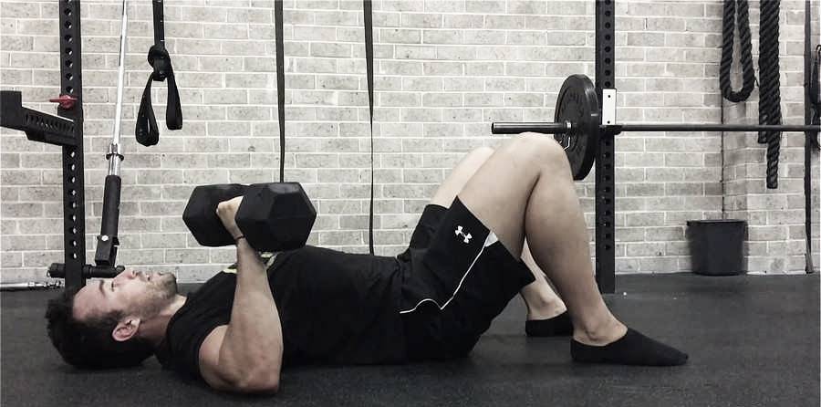 Еще один способ — установить вес на штангу и лечь под нее на пол. Затем с помощью бедер (ягодичного мостика) поднять штангу в исходное положение. Это все затрудняет упражнение, но после того, как снаряд находится в верхней позиции, разницы нет никакой. Нет необходимости делать паузу, когда локти касаются пола. Но это отличный способ нагрузить трицепсы максимально (движение из положения полной остановки).