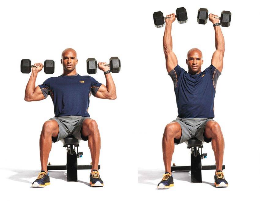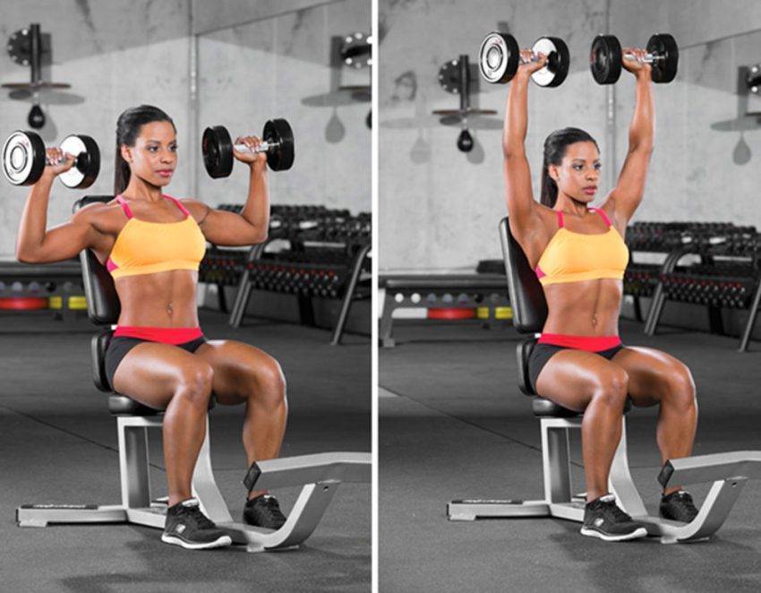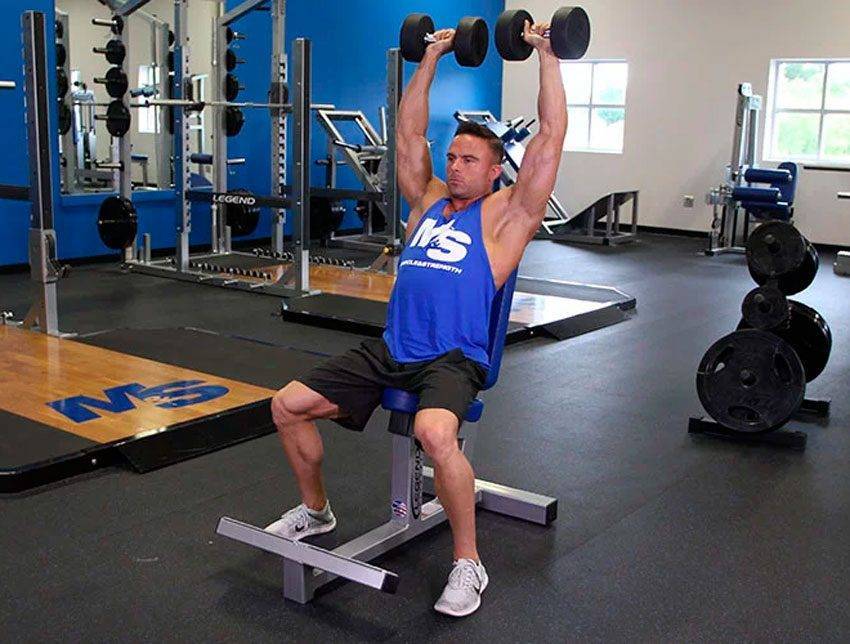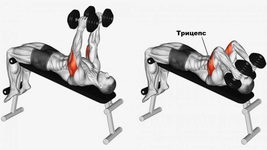 Французский жим с гантелями: вариации стоя, сидя и лежа