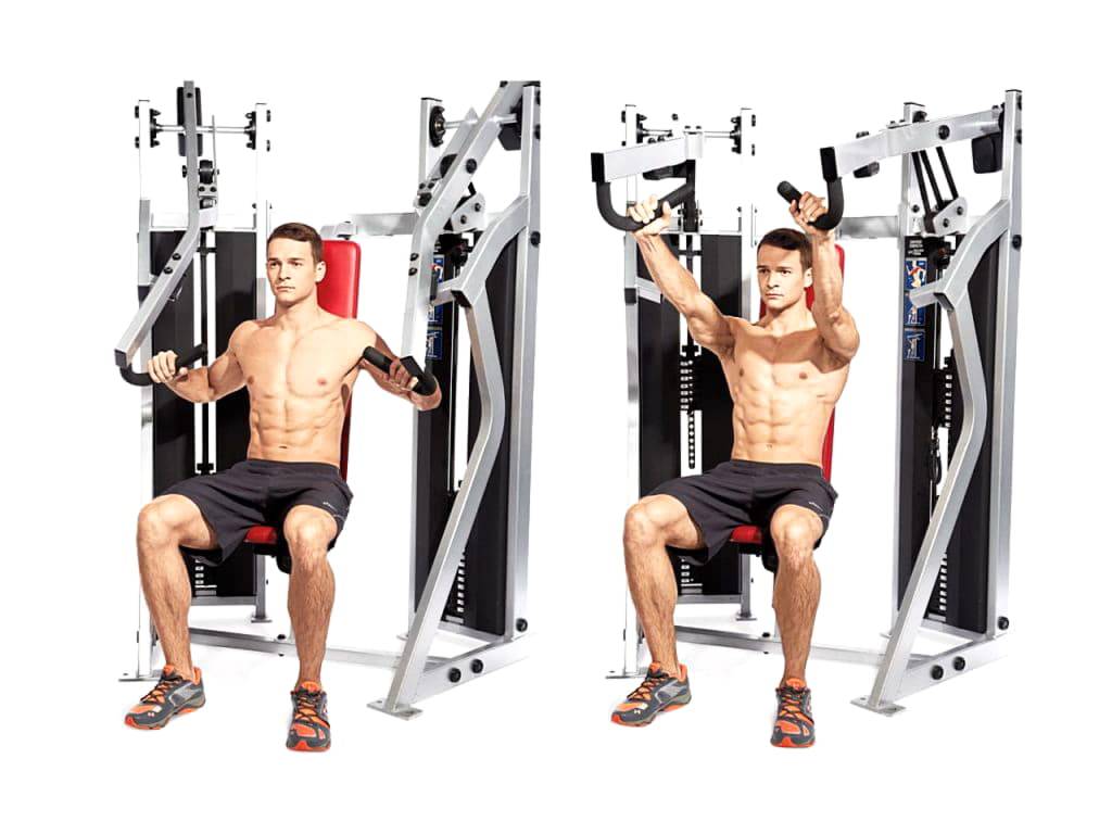 Жим сидя выполняется под занавес тренировки, чтобы акцентировать внимание на плохо проработанных мышечных группах. Более популярен жим лежа, но он не подходит для бодибилдеров, получивших травму спины